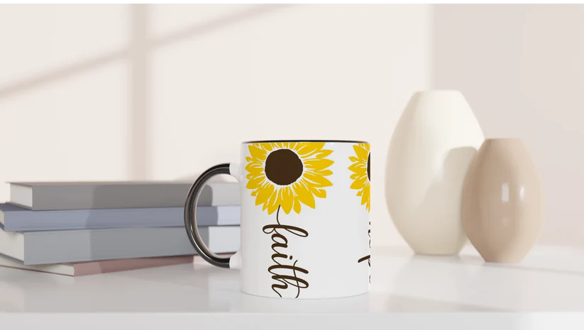 Faith Over Fear Ceramic Mug – Glossy 11oz Coffee Cup with Colored Accents